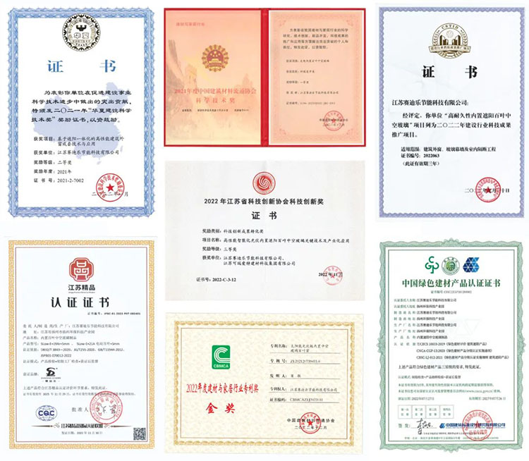 作为国内建筑遮阳行业的先进企业,赛迪乐科技集团一直坚持创新引领,专注于内置遮阳百叶中空玻璃的技术研发,助力绿色建材、高质量门窗发展,并获得了华夏建设科学技术奖、江苏精品、全国建设行业科技成果推广项目、中国建材与家居行业科学技术奖一等奖等荣誉。