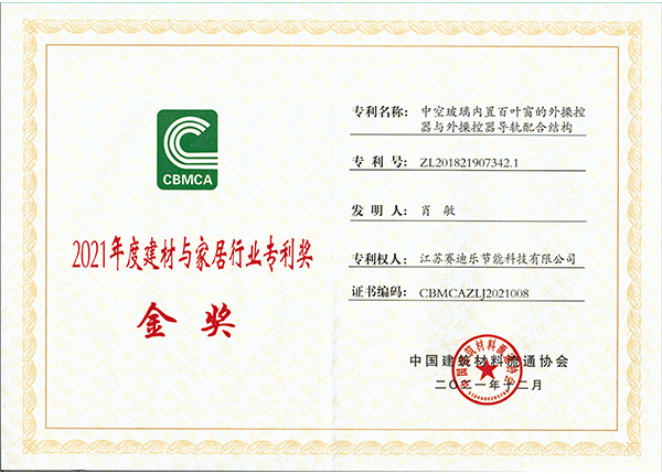 Chairman Xiao Min won the Gold Award of the 2021 Patent Award in the Building Materials and Home Furnishing Industry