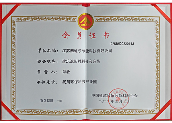 Chairman Xiao Min has been appointed as a member of the Architectural Sunshade Materials Branch