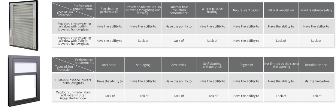 Note: Since the external sunshade roller shutter does not contribute to the heat transfer coefficient of the entire window when retracted, only by using triple-glazed double-cavity insulating glass can the energy-saving performance of doors and windows meet the same standards as that of built-in louvered insulating glass.