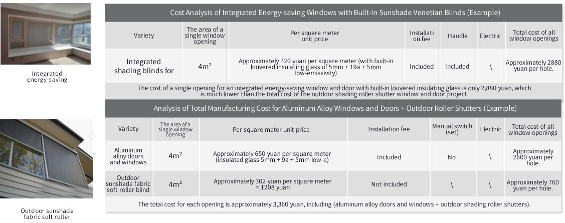 Comparison of construction cost between integrated energy-saving doors and windows with built-in sunshade blinds and outdoor sunshade roller shutters